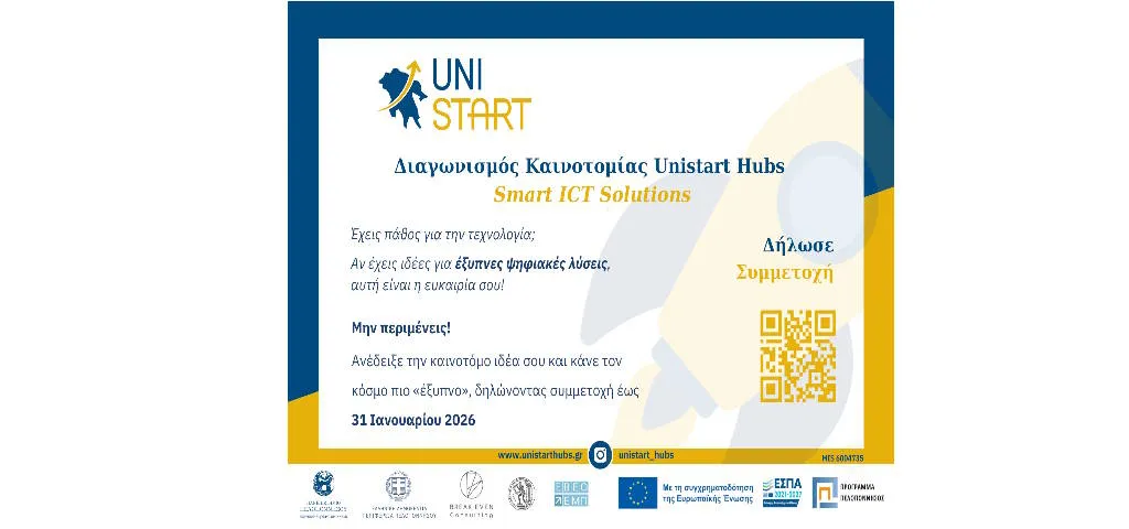 Unistart Hubs - 3ος Διαγωνισμός Καινοτομίας «Smart ICT Solutions»