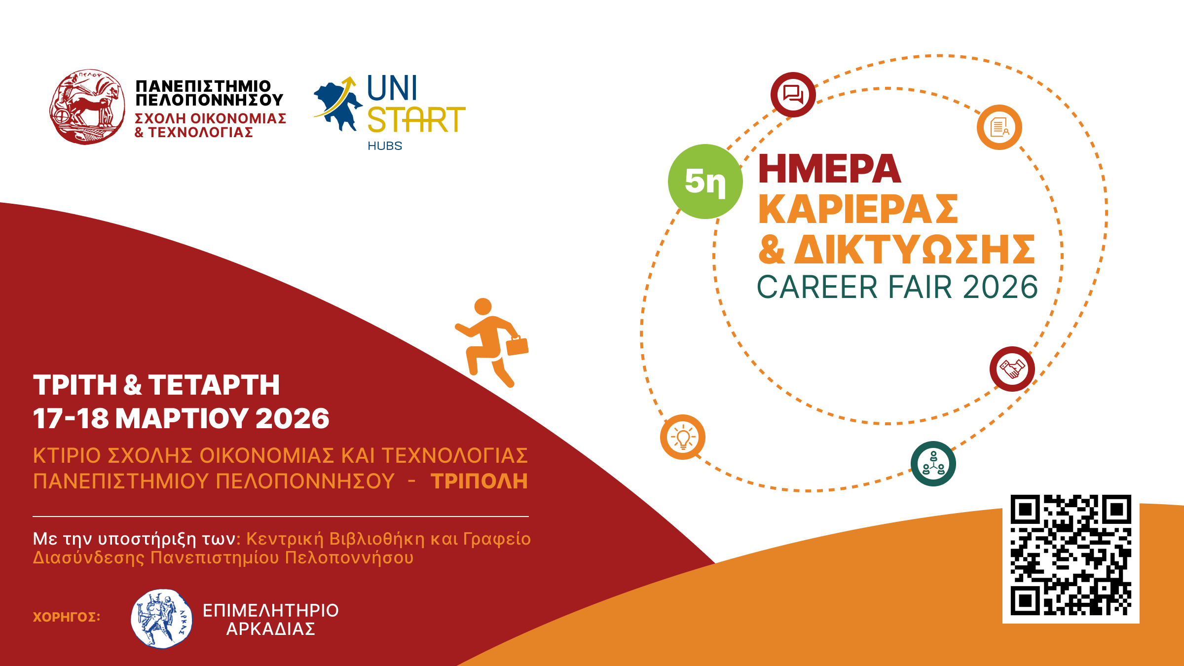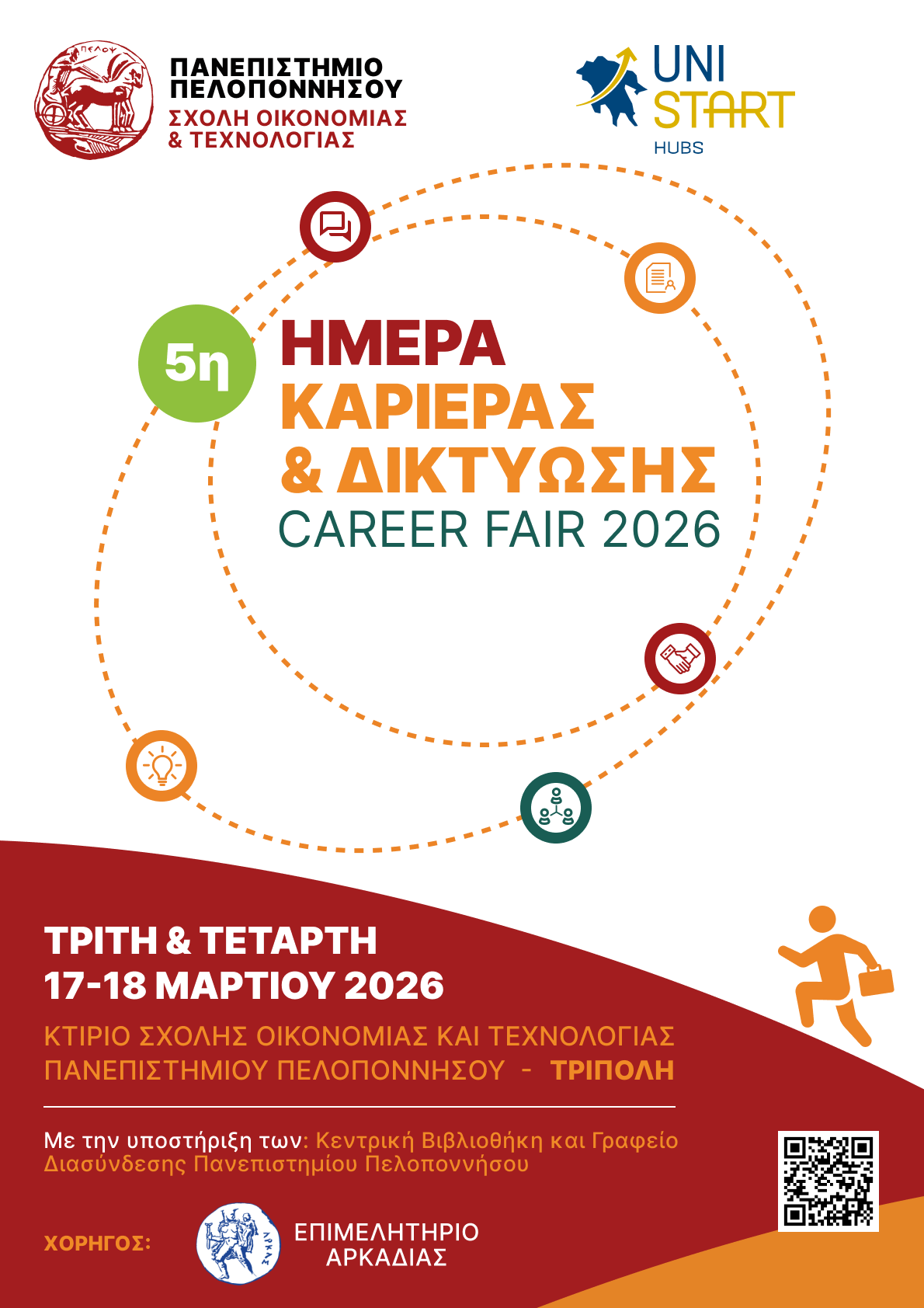 Πολυσυνέδριο Επιχειρηματικότητας και Καινοτομίας «Innovate. Connect. Lead.»5η Ημέρα Καριέρας | Τετάρτη 18 Μαρτίου 2026 Επισυναπτόμενα Αρχεία Πρόγραμμα Πρόσκληση Αφίσα
