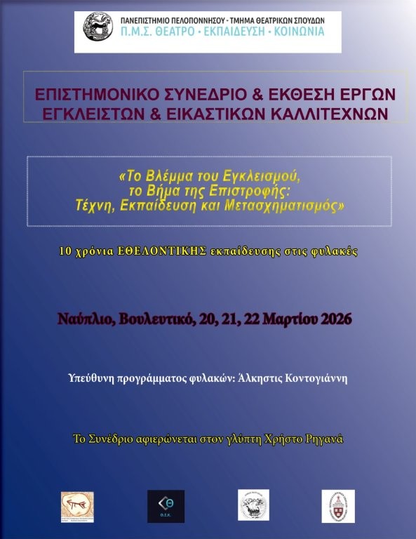 Το Συνέδριο οργανώνει το ΠΜΣ «Θέατρο - Εκπαίδευση - Κοινωνία» σε συνεργασία με τον Δήμο Ναυπλιέων, με την υποστήριξη του Κέντρου Σπουδών Ελλάδος του Harvard και του Εργαστηρίου Ποινικών και Εγκληματολογικών Ερευνών της Νομικής Σχολής Αθηνών.