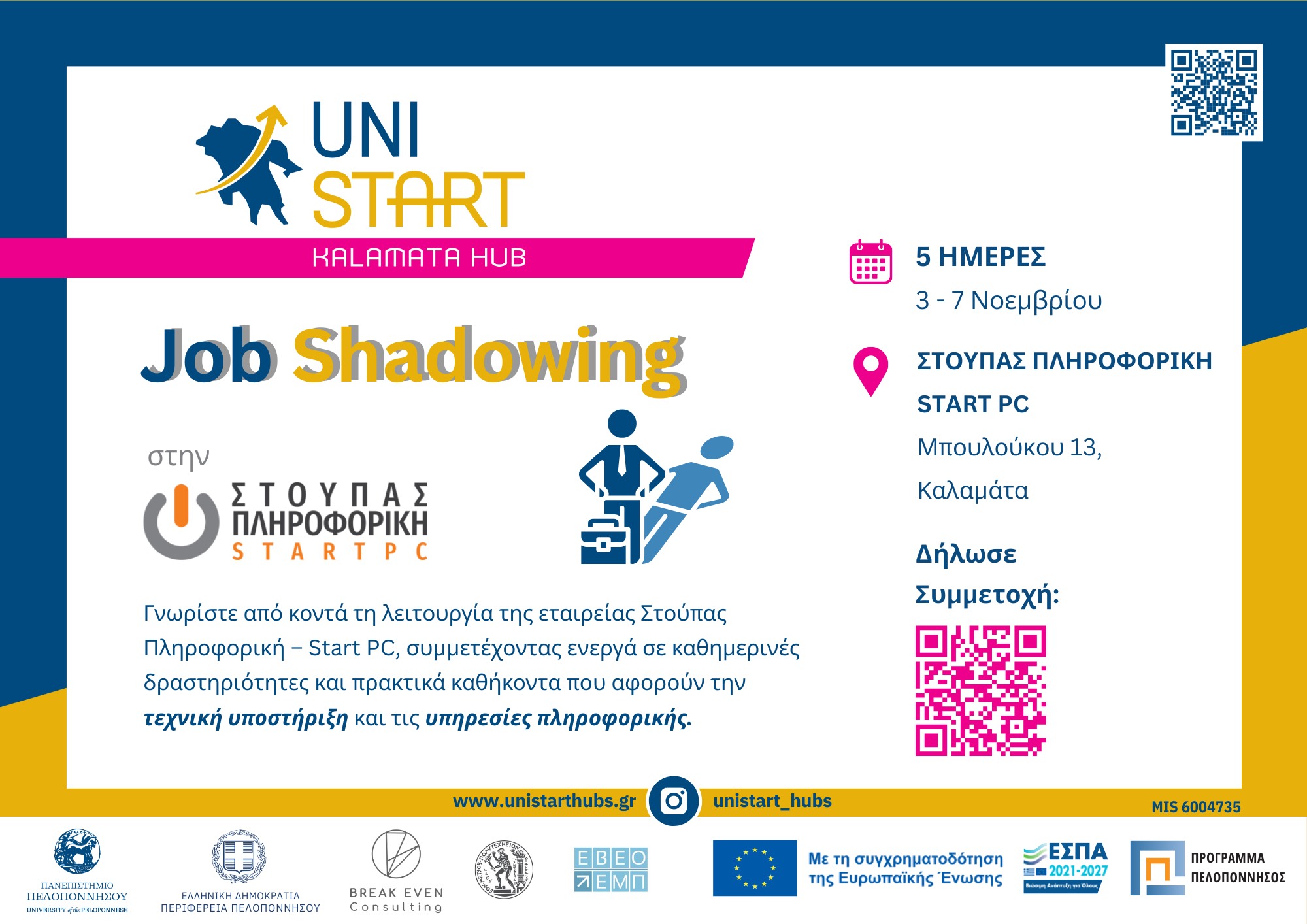 Τα UniStart Hubs σε προσκαλούν σε μια μοναδική εμπειρία Job Shadowing στη START PC στην Καλαμάτα, από 3 έως 7 Νοεμβρίου 2025.